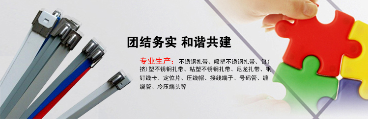 樂清迎發電纜附件有限公司專業生產不銹鋼扎帶、噴塑不銹鋼扎帶、包(擠)塑不銹鋼扎帶、粘塑不銹鋼扎帶、尼龍扎帶、鋼釘線卡、定位...